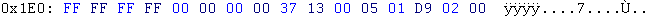 | 0x1E0 | FF FF FF FF | unknown | unknown, looks like a divider between 00 03 and 00 05 |