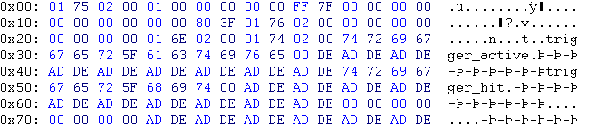 | 0x00 | 01 75 02 00 | 629 | 00629-trigger_arc.TRIG |