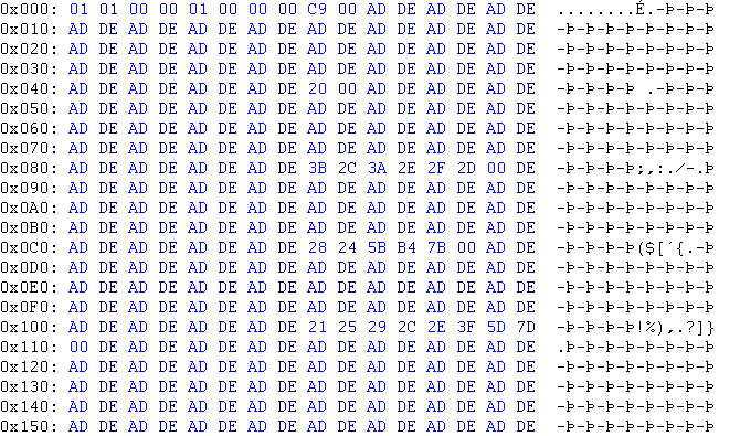 | 0x10 | C9 00 AD DE | 201 | unknown |