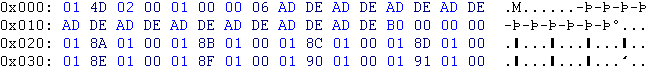 | 0x020 | 01 8A 01 00 | 394 | link to 00394-_DOOR_FRAME.TXMP |