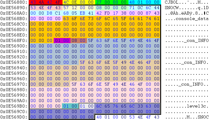 | 4C 0E 00 00 | 3660 | 3660 bytes is the length of the following console part from this position | ||||||||||||||||||||||||