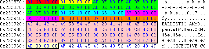 | BALLISTIC AMMO | space for words (all entries after the fist 00 are useless) |