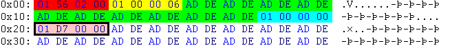 | 01 00 00 00 | 1 | 1 package follows (the package is edged in black) |