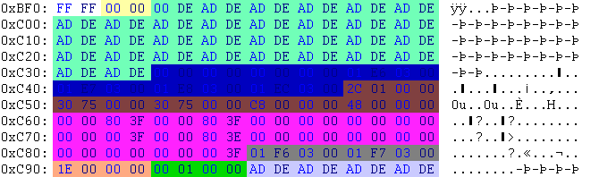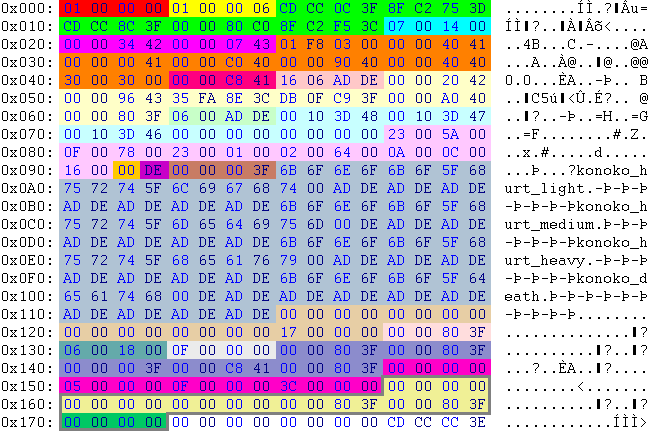 | 00 00 80 3F | 1.000000 | unknown; always the same | ||||||