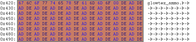 | glowtex_ammo | name of the texture which surrounds the 3D model above in some distance (reference to 01448-glowtex_ammo.TXMP) | |
