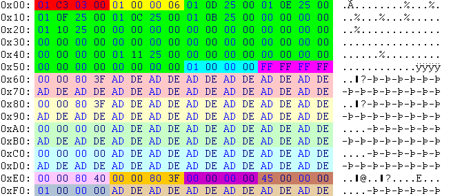 | 00 00 00 00 | 0.000000 | unknown; always the same |