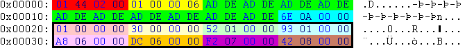 | 6E 0A 00 00 | 2670 | 2670 packages follow (one package is edged in black) |