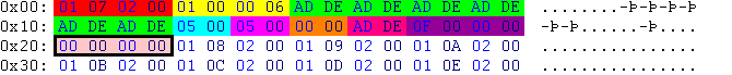 | 0F 00 00 00 | 15 | 15 packages follow (one package is edged in black) |